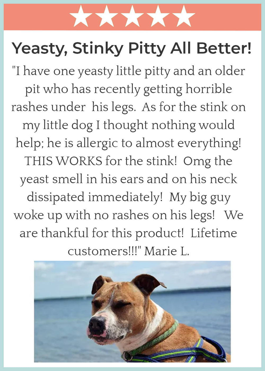 Gently eliminates odor-causing yeast and bacteria. A safe, multipurpose solution your furry friend will love!
