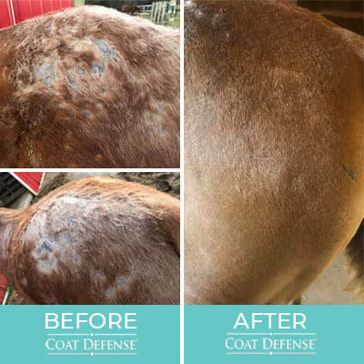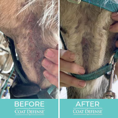 No matter how well you care for your horses, skin funk can show up and just not go away. We treated this to no avail - until we tried COAT DEFENSE. In just a week we noticed a huge difference! The best part is, it’s all-natural. Check it out and see for yourself how fast it works!