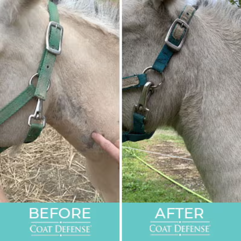 No matter how well you care for your horses, skin funk can show up and just not go away. We treated this to no avail - until we tried COAT DEFENSE. In just a week we noticed a huge difference! The best part is, it’s all-natural. Check it out and see for yourself how fast it works!